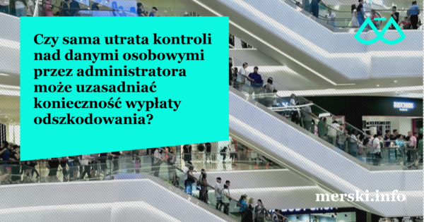 Czy sama utrata kontroli nad danymi osobowymi przez administratora może uzasadniać konieczność wypłaty odszkodowania?